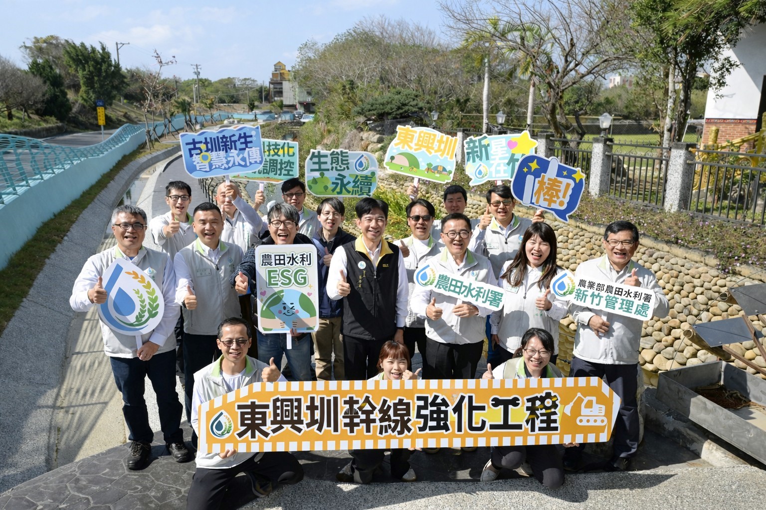 農水署進一步指出,本工程秉持「安全、品質、永續」之核心理念,力求在灌溉功能的基礎上,加入生態友善、環境教育與休憩功能。從優化圳路灌溉調控,確保支線水量合理分配,增加輸水效率及舒緩新竹地區水資源競用壓力。透過圳旁隙地空間活化,藉由生態環境復育,讓隙地活化再生。到融入了圳路的文史,回溯農友們的百年記憶,以歷史為經,美學為緯,打造東興圳的全新風貌,使原本閒置的隙地轉化為兼具教育、生態與休憩功能的共享空間。