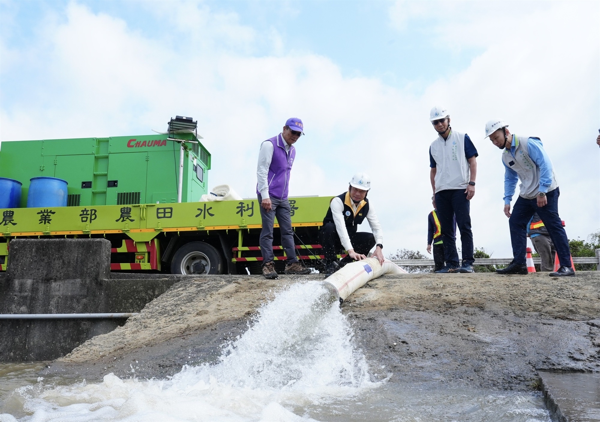 農水署進一步說明,近年來該署積極提升全國各地灌溉系統韌性,包括增設蓄水設施、擴增蓄水空間、新建調度設施、開發多元水源、設置智慧調控系統等措施,已有效降低缺水停灌風險。為提升抽取河川溪流等多元水源補充灌溉之效能,農水署更於去年打造行動抗旱車,將泵浦、發電機、控制箱及輸水軟管全面整合於車體,且新型抽水機組於水深15公分以上即可作業,大大提升抽水作業的機動性及效率,為今年抗旱作為再添一大助力。